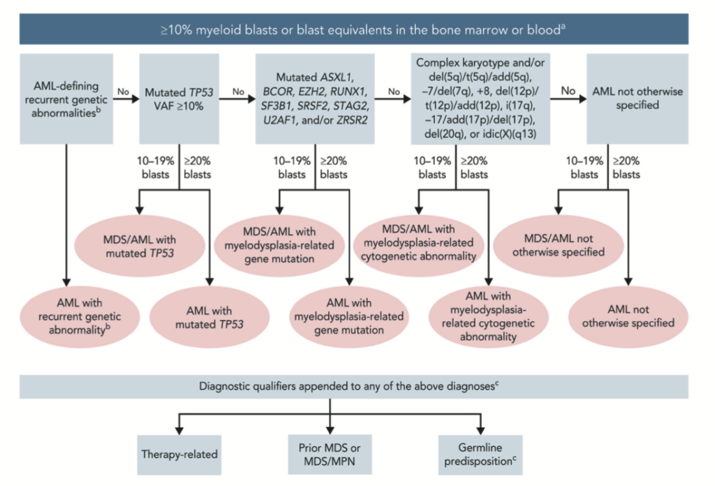 The World Health Organisation (WHO) (2016) revised its classification system to incorporate the advances in particular biomarkers associated in AML retrieved from investigations, such as gene expression analysis and next generation sequencing (NGS).