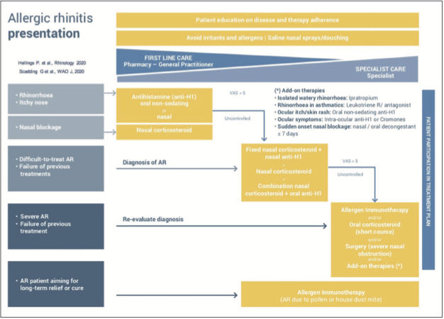 Hellings PW, Scadding G, Bachert C, Bjermer L, Canonica GW, Cardell LO, et al. EUFOREA treatment algorithm for allergic rhinitis. Rhinology. 2020 Dec 1;58(6):618-622