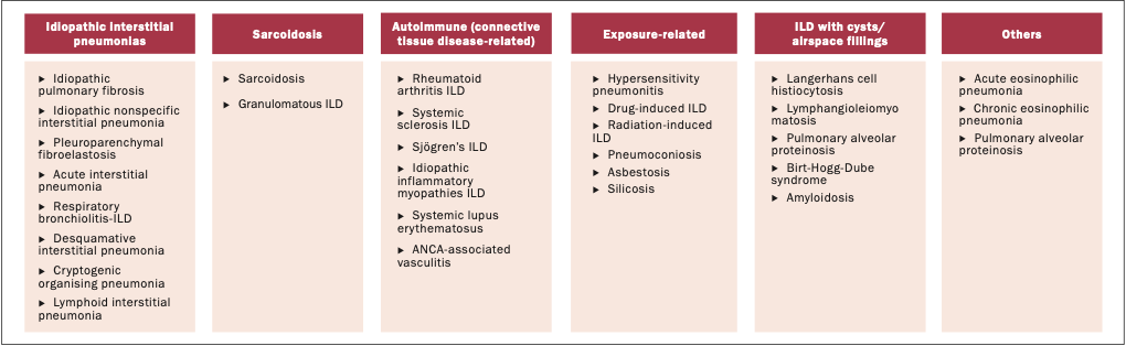 ILDs are a diverse and complex group of disorders that require a comprehensive, multidisciplinary approach for accurate diagnosis and effective management. Advances in imaging, MDT collaboration, and emerging precision medicine tools – including biomarkers and AI – are reshaping the diagnostic landscape. While antifibrotic and immunosuppressive therapies have improved outcomes in select ILD subtypes, they remain limited in halting disease progression. Non-pharmacological interventions such as pulmonary rehabilitation and ambulatory oxygen also play a key role in symptom relief. Moving forward, personalised care strategies and broader access to MDT infrastructure will be essential to improving outcomes and reducing global disparities in ILD care.