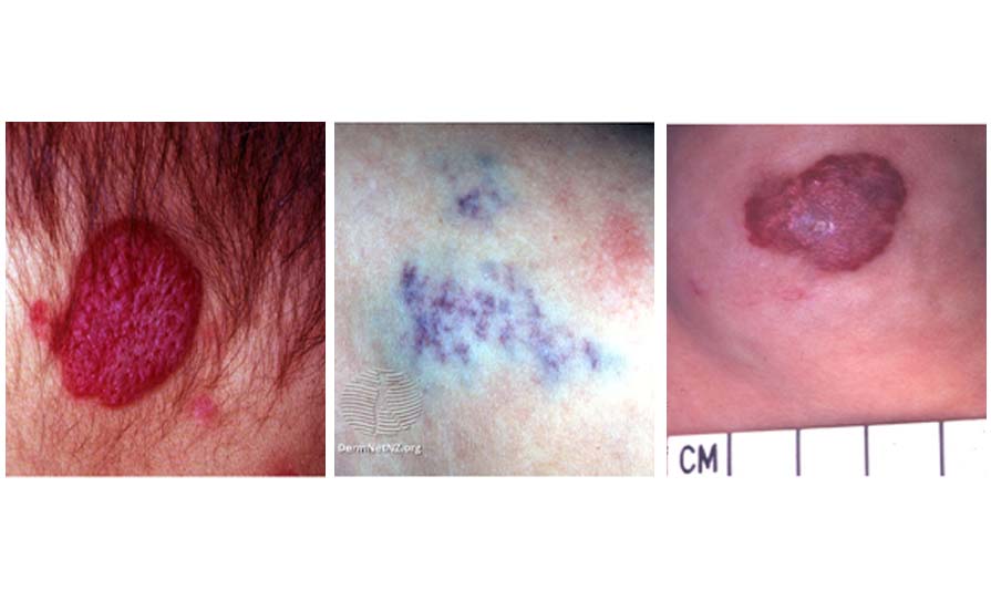 Infantile haemangiomas (IH), commonly known as strawberry birthmarks or strawberry naevi, are benign vascular tumours that occur in approximately 5 per cent of Caucasian infants. They are more common in females and their incidence is increased in pre-term infants as well as in twins. There is a genetic component, with a family history of IH being reported in about a third of cases. IH can be classified as superficial, deep, or combined based on their depth within the skin and their clinical appearance. The classic, strawberry-like, bright-red nodule or plaque is the most easily identified type of IH and represents the superficial subtype. Deep IH are raised, skin-coloured nodules and often have a blueish hue. Combined haemangiomas have features of both superficial and deep haemangiomas. Multiple lesions occur in up to 20 per cent of cases and are more commonly seen in twins.