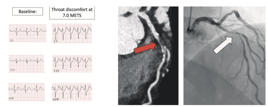 Our alternative to ETT has been invasive coronary angiography (ICA), considered to be the gold standard for diagnosing CAD. Although ICA tells us about obstructive stenosis, it cannot give an assessment of overall plaque burden. Furthermore, up to 60 per cent of ICAs are normal in the evaluation of patients with chest pain,12 exposing them to potential risk of complications without any additional benefit over CTCA.