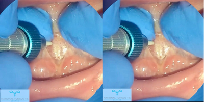 Frenuloplasty (see images 2a-d) is a procedure that involves releasing the tongue frenulum and placing absorbable stitches and glue to help control the healing. Local anaesthetic is used to ensure this is pain free. Children and older infants would have the procedure under conscious sedation, so they are relaxed, but still have normal tone in their tongue. Adolescents and adults do not need sedation just the local anaesthetic.