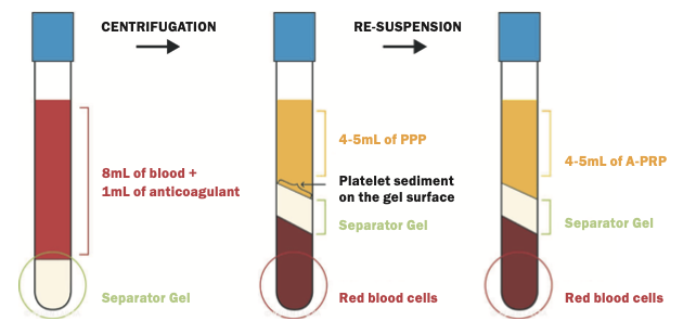 Generally, the preparation of PRP involves obtaining autologous whole blood from the patient followed by a centrifugation process to separate plasma from red blood cells and leukocytes (Figure 1). The method of isolation plays a role in the final concentration of platelets and leukocytes in the PRP preparation. What was once a complex ‘event’ has been simplified into a three-step process.