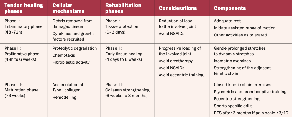 The underlying pathology in persistent cases of MSK injury can be related to irreversible microstructural changes in connective tissue that have failed to recover and adapt to rehabilitation. Typically, recovering from any injury is regarded as a three-phase process, as outlined in Table 1.