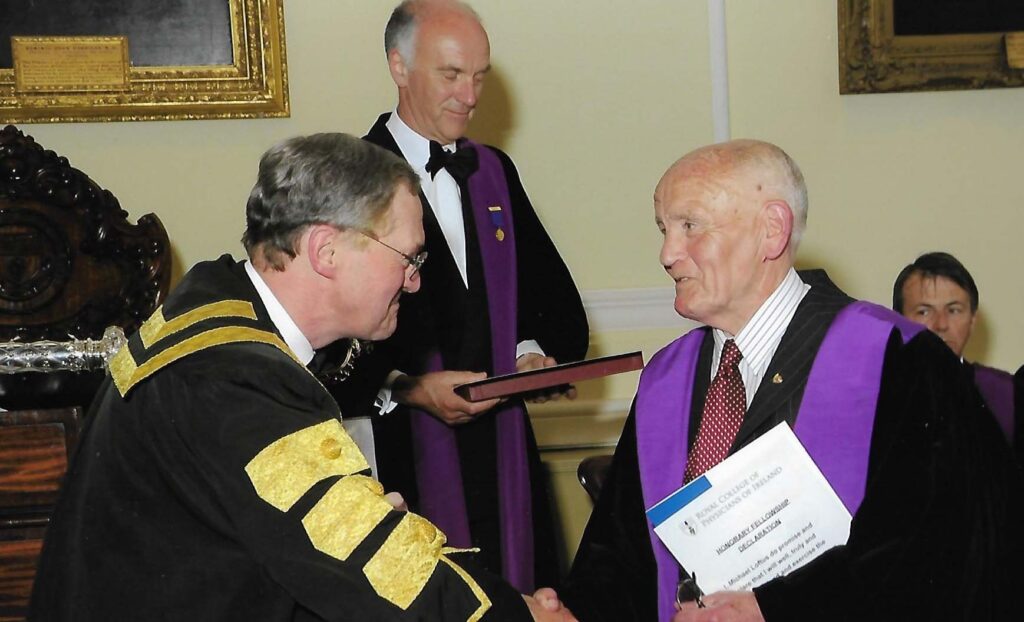 Dr Loftus was awarded Mayo Man of the Year in 1983. During 2002, he was the recipient of a prestigious Sport and Wellbeing Award by the Olympic Council of Ireland. In recognition of his contributions to sport, health, community, and civic life, Dr Loftus was awarded an honorary fellowship of the Faculty of Sports and Exercise Medicine at the RCSI in 2006. In 2009, he was made an Honorary Fellow of the RCPI and, in 2015, he was conferred with an honorary Doctor of Law from the University of Galway. His advocacy for healthy ageing and work with the National Council on Ageing and Older People was acknowledged in 2010 when he was the recipient of an All-Ireland Inspirational Life award.