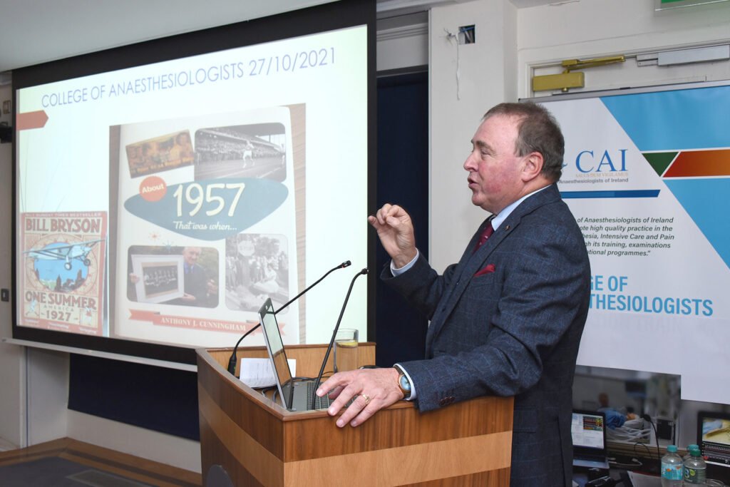Mr Martin McCormack, CEO, College of Anaesthesiologists of Ireland (CAI); Prof Ellen O’Sullivan; Mr Ronnie Delaney; and Dr Ron Kirkham