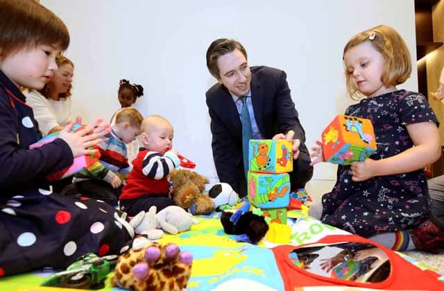 NO REPRO FEE 6/12/2018 Pictured at the launch of mychild.ie, a new HSE pregnancy and child health website and set of three books for parents and parents-to-be is Minister for Health Simon Harris TD and little ones, from left, Holly McGrath (5) from Baldoyle, Dublin 13, Sadie Sheridan (3) and mom Pauline Sheridan from Clonee, Dublin 15, Cormac O’Brien (2) from Saggart, Co Dublin, Cillian McGrath (6 months) and Fiadh Ryan (3) from the Navan Road, Dublin 7. Mychild.ie is designed to be a one-stop-shop where parents can access accurate and trusted information and advice on pregnancy and all the way through the first three years of their child’s life. The website was launched alongside three new books for parents. The new ‘My Pregnancy’ book is a 224 page guide that will be given to pregnant women at their first antenatal appointment from early 2019. Parents will then receive the next books in sequence, ‘My Child: 0 to 2 years’ and ‘My Child: 2 to 5 years’, from their public health nurse. See mychild.ie for more information. PHOTO: Mark Stedman