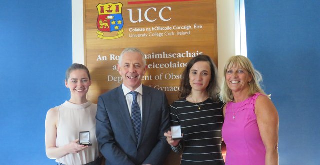 Pictured L to R: Ms Sinead O’Riordan; Prof John Higgins, Professor of Obstetrics and Gynaecology at UCC; Ms Sinead Flanagan; and Ms Mary Morrison, Undergraduate Co-Ordinator.