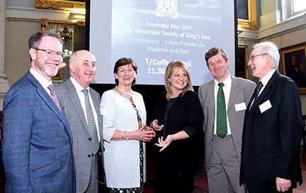 The Medico-Legal Society of Ireland Academic Day 2019 recently took place in Kildare Street and University Club. Pictured L to R are: Dr Conor Farren, Consultant Psychiatrist; The Hon Mr Justice Peter Kelly; Ms Liz Doyle Fleming, President, Medico-Legal Society of Ireland; Prof Mary Aiken, Cyberpsychologist, UCD Geary Institute for Public Policy; Dr Conor O’Shea,National GP Information Technology Coordinator, ICGP; and Mr Hugo Bonar, Enforcement Manager, Health Products Regulatory Authority