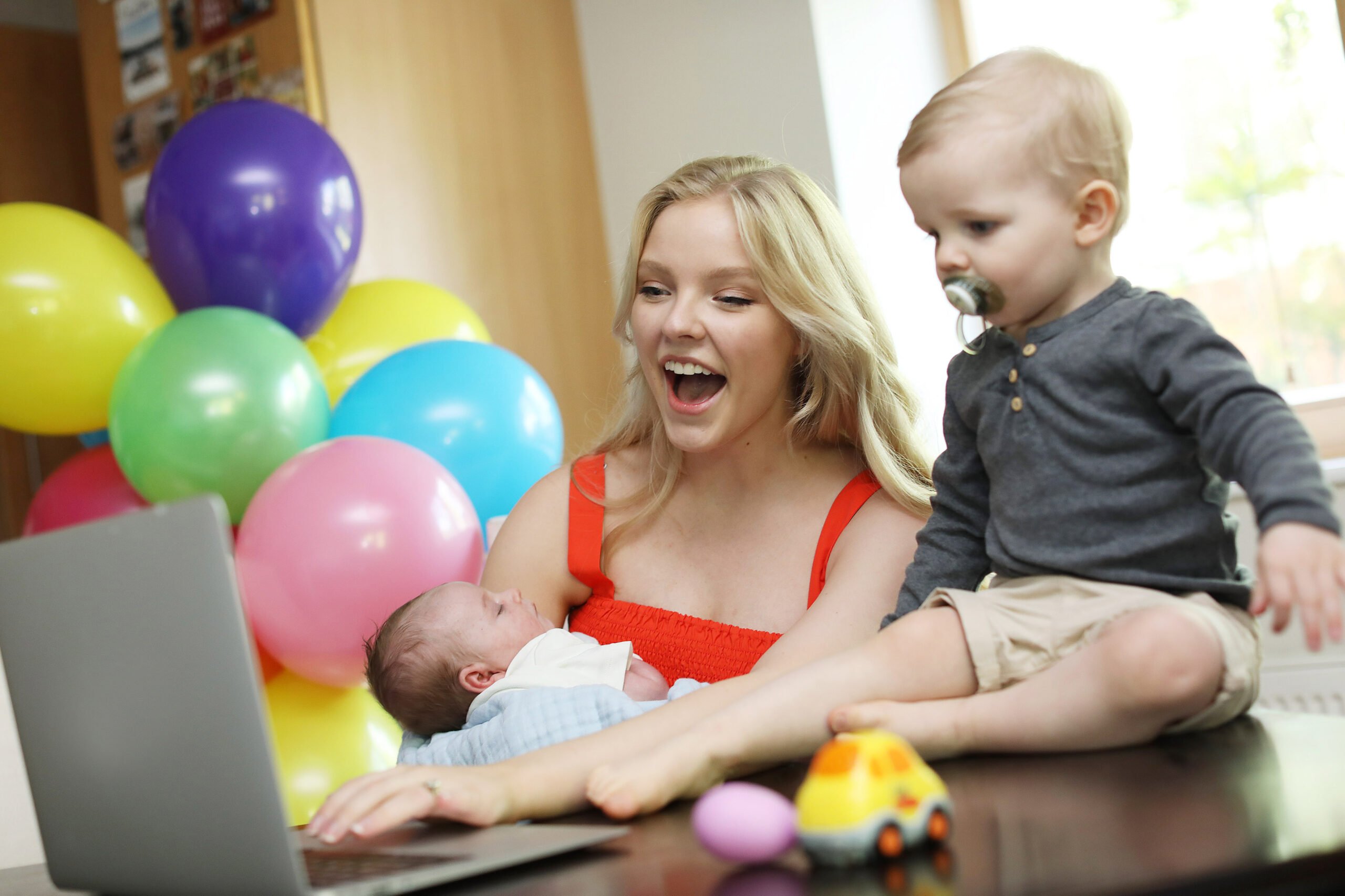 Dr Connie Dale celebrates receiving her final year results from the RCSI with her one-month-old son Odhran and son Otto (aged one-and-a-half) at home in Dundrum, Dublin. More than 300 future doctors received their results on Thursday 13 May, marking the second time the RCSI results day event was held via live stream.