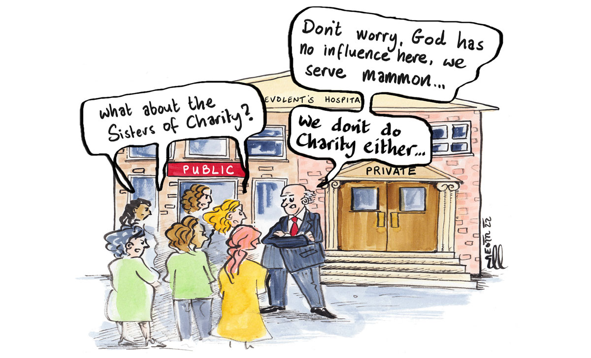 What about the sisters of charity? Don’t worry, God has no influence here, we serve momman… We don’t do charity either…By Eoin Kelleher.