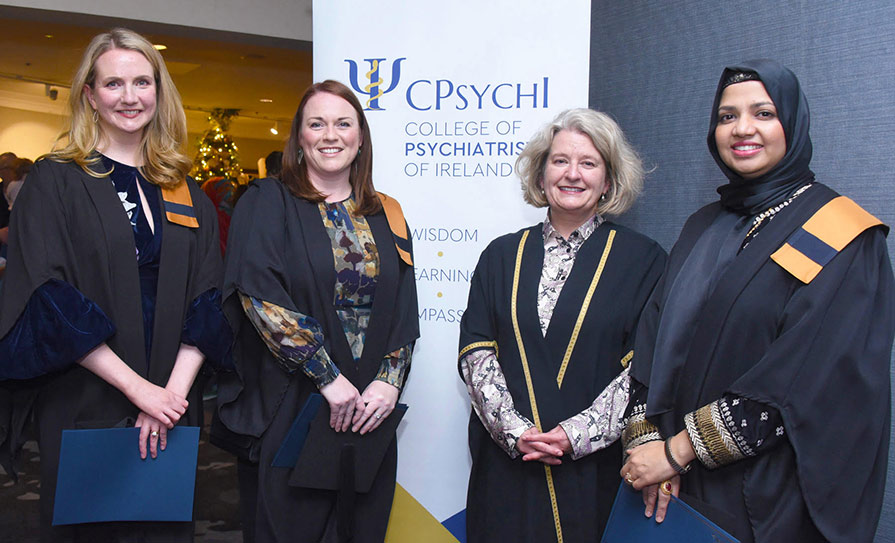 Pictured L-to-R: Dr Sinead Costello; Dr Eimear McMahon; Dr Aoibhinn Lynch, Dean and Director, Postgraduate Education and Training, College of Psychiatrists of Ireland; and Dr Memoona Usman