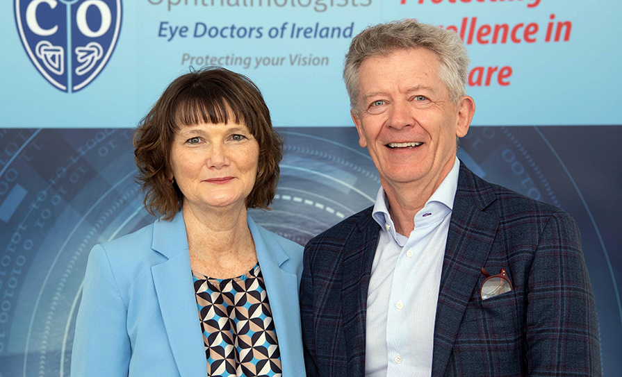 Dr Geraldine Comer, Consultant Medical Ophthalmologist, CHO2/Community Healthcare West, who presented the European Society of Ophthalmology (SOE) Lecture 2023 entitled ‘Medical Ophthalmology – A Personal Journey’ is pictured with Prof Billy Power, Clinical Lead for Ophthalmology at the ICO Annual Conference (Great Southern Killarney, Co Kerry from the 22bd – 24th May )