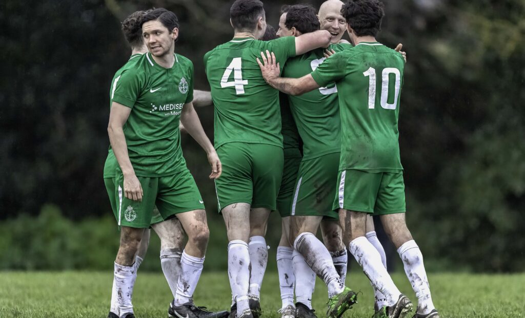 However, over the next 20 minutes an urgency entered DHFC’s play. A disallowed equaliser off the head of Robert Kelly provided no relief to the team as they searched to level the score. Despite his already impressive work-rate, Fergus Kerrigan somehow found another gear, making darting runs in behind as well as getting on the ball in the midfield. Eventually this led to him laying the ball off to John Cosgrove, who had found space in a dangerous pocket of midfield. Time slowed down as Cosgrove struck a thunderbolt that ricocheted off the crossbar and found the net off the back of the goalkeeper. The celebrations that ensued were kept brief despite the stellar goal, as the lads went looking for the win.