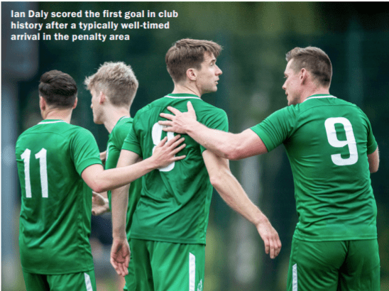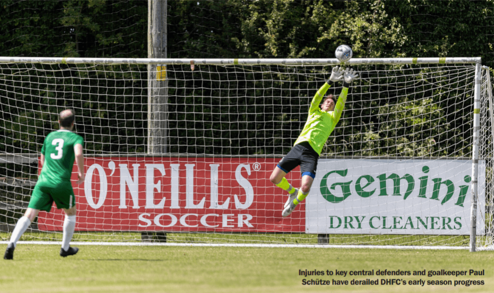 DHFC bolted from the blocks in the first few league fixtures, immediately turning Pearse Park into a fortress with two wins and a draw as the season got underway. Ian Daly opened the Hospitals account with a momentous goal, the first in club history. A typically well-timed Lampardesque run and neat finish has been a feature of Daly’s season so far. Seven points from the first three games saw the DHFC briefly become early league leaders in August. This was followed by two cup runs, with the doctors reaching the third rounds of both the FAI Junior Cup and the Leinster Football Association Cup.