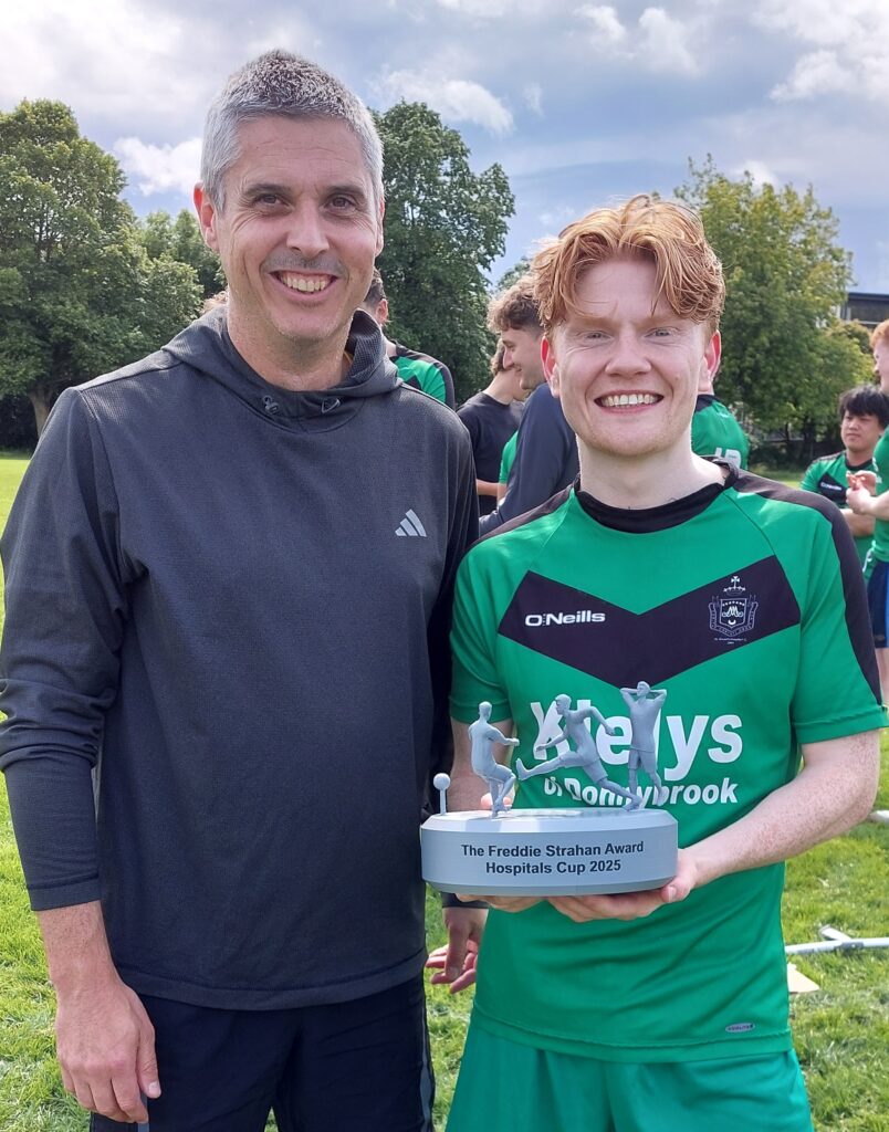St Vincent’s captain Fionn Nally was the 2025 recipient of the Freddie Strahan award. Inaugurated this year by Paul McElwaine of the Federated Dublin Hospitals (left), the award recognises the best performing player in the tournament