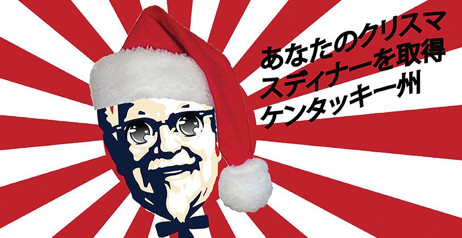 In Japan, meanwhile, marketing tsars launched an advertising campaign (pictured) with the slogan Kurisumasu ni wa kentakkii! in 1974, which translates as ‘Kentucky for Christmas!’ It was a smash hit — even today, despite the fact that Christmas is not traditionally celebrated there, you can expect to pay around €20 for Christmas dinner in a Japanese KFC, but be prepared for queues that are regularly out the door.