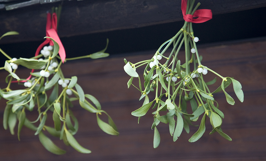 - Mistletoe and fertility rites: The tradition of sneaking a kiss under the mistletoe actually began as a fertility rite. It’s estimated that the romantic connotations of the herb date back to the Celtic druids of the first century AD. Because the hardy mistletoe could bloom even during a freezing winter, it was even given to people and animals in an effort to enhance their fertility. Incidentally, the ancient Greeks used it as a cure for everything from spleen disorders to menstrual pains. Medical historians will note that the Roman naturalist Pliny the Elder promoted it as a balm against poisons, epilepsy, and even ulcers.