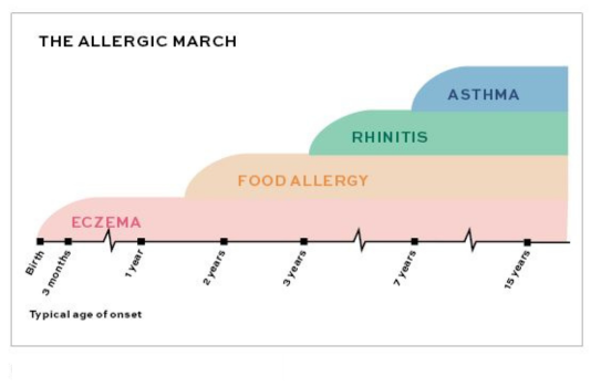 - Allergic asthma: Often commences in childhood and is associated with past and/or family history of allergic disease such as eczema, allergic rhinitis, or food or drug allergy. Patients usually respond well to inhaled corticosteroid (ICS) treatment.