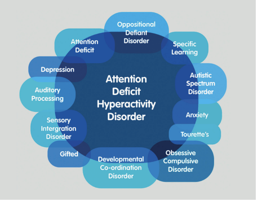 Where there are coexisting conditions (eg, mood/learning/conduct disorders, anxiety disorders, personality disorders, bipolar disorders, obsessive compulsive disorder, substance misuse disorder), the level of impairment due to ADHD versus the level of impairment from the comorbid disorder is important to ascertain or differentiate. This will guide the treatment plan.