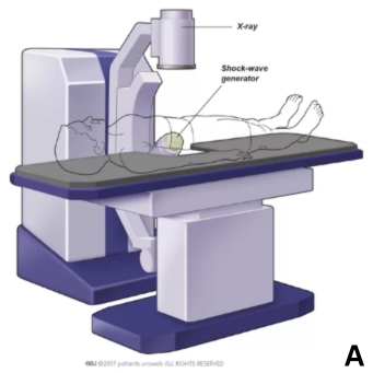 Finally, there is the active destruction or removal of stones. This can be done using extracorporeal shockwave lithotripsy (ESWL) or surgery (Figure 3A). ESWL is suitable in stones that are <2cm in size. It is usually done with the patient awake and involves using sound waves to fragment the stones, which can then be passed out in the urine. It may require more than one session to fragment the stone.